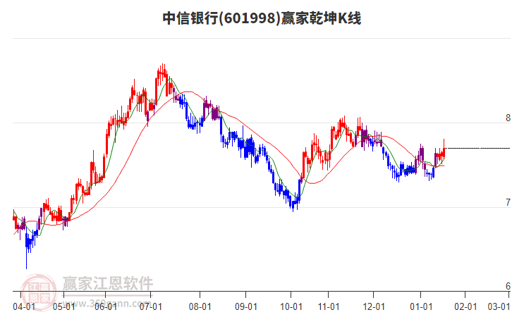 中信銀行處于贏家江恩多頭主線形態(tài),從1月8日形成底分型后持續(xù)上攻,今日突破前高形成初次江恩筑底信號,中期多頭趨勢延續(xù),但長期處于回調中。中信銀行根據(jù)贏家江恩極反通道趨勢工具展示,上方壓力位8.2967