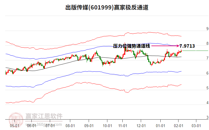 出版?zhèn)髅?601999)根據(jù)贏家江恩極反通道趨勢(shì)工具展示,上方壓力位7.9868,下方支撐位7.2114。出版?zhèn)髅?601999)處于贏家江恩空頭中期反彈形態(tài),1月27日發(fā)出江恩筑頂信號(hào)后,經(jīng)過3日,