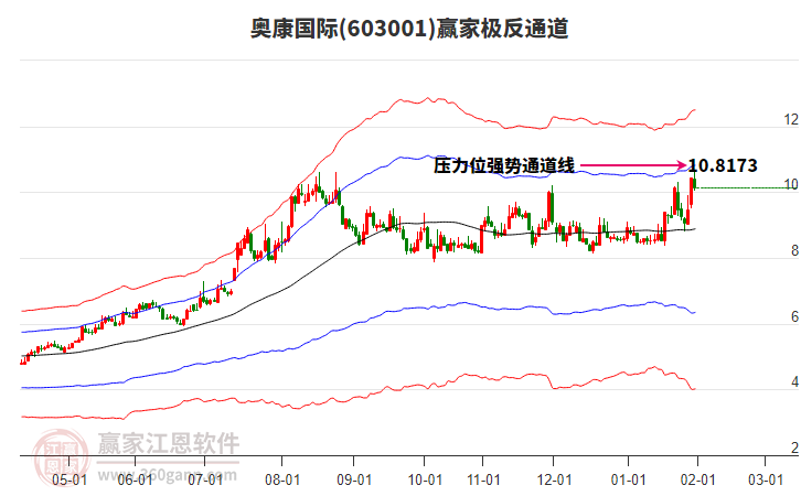 奧康國(guó)際處于贏家江恩多頭主線形態(tài),從12月17日形成底分型后持續(xù)上攻,今日突破前高形成初次江恩筑底信號(hào),中期多頭趨勢(shì)延續(xù),但長(zhǎng)期處于回調(diào)中。奧康國(guó)際根據(jù)贏家江恩極反通道趨勢(shì)工具展示,上方壓力位10.5