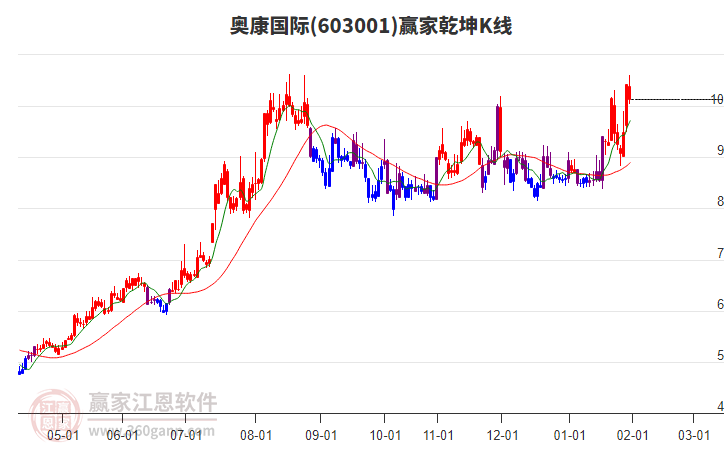 603001奧康國(guó)際目前漲停,所屬板塊體育產(chǎn)業(yè)、跨境電商發(fā)出多頭預(yù)警信號(hào),淘寶c2m、紡織服裝短期底分型后持續(xù)上攻。603001奧康國(guó)際截止目前突破黃金價(jià)格延伸線工具壓力位10.03元,根據(jù)贏家江恩黃