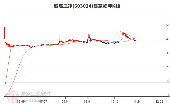 威高血凈(603014)近期高點(diǎn)49.01持續(xù)下跌,漲幅回落23.02% 次新股概念今日跌幅4.36%