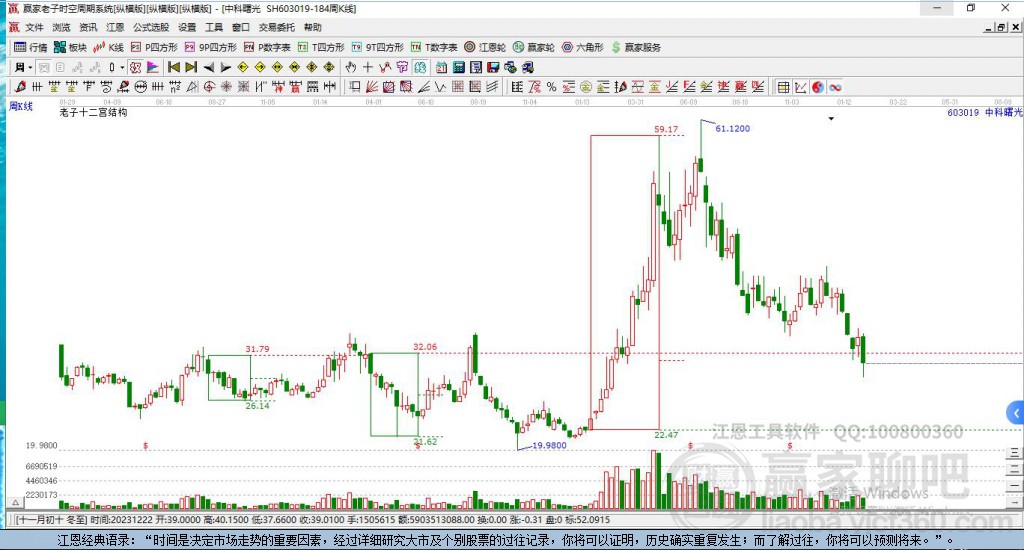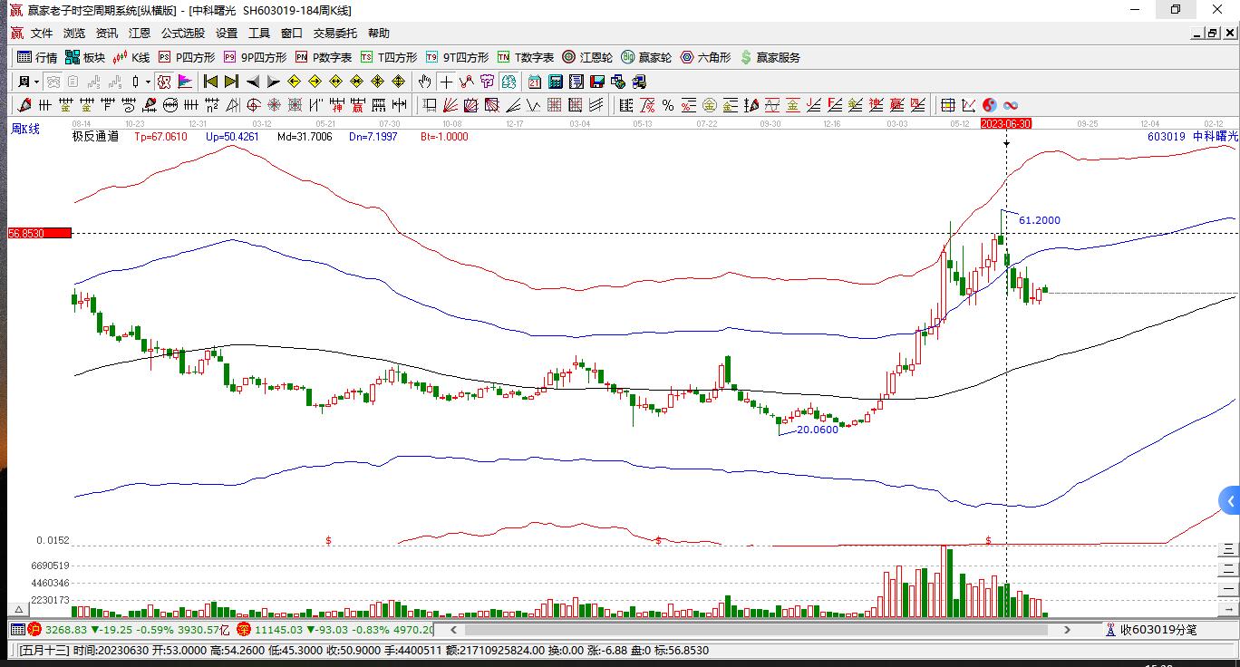 依據(jù)贏家江恩極反通道趨勢工具展示,本周股價處于生命線上強勢通道,本周收盤價91.7,自近期通道內(nèi)低點82.23上漲至本周,到達生命線81.9715點上方,短期關(guān)注此線支撐,如支撐不破,保持在強勢通道內(nèi),波段繼續(xù)看多,有望挑戰(zhàn)藍色上軌線。若跌破生命線81.9715,進入弱勢通道,調(diào)整周期繼續(xù)延長。