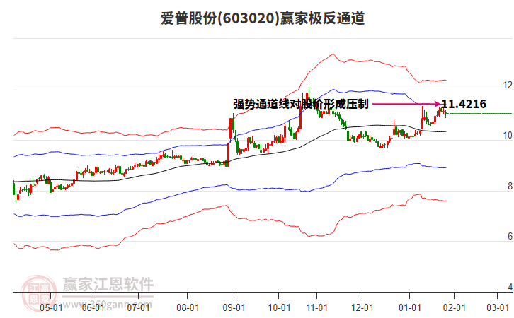 依據贏家江恩系統(tǒng)趨勢工具極反通道分析判斷愛普股份603020運行在生命線以上強勢區(qū)域,根據規(guī)則該股可短線、波段結合操作;結合物極必反的原理通過分鐘圖做盤中差價,應用口訣是:生命線上強勢走,生命線下難抬頭;紅黃兩條外軌線,壓力支撐顯勢頭。