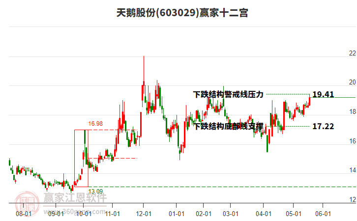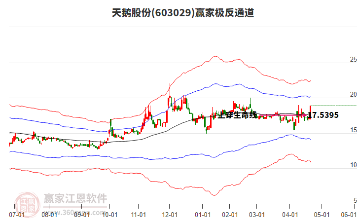 依據(jù)贏家江恩系統(tǒng)趨勢工具極反通道分析判斷天鵝股份603029運行在生命線以上強勢區(qū)域,根據(jù)規(guī)則該股可短線、波段結合操作;結合物極必反的原理通過分鐘圖做盤中差價,應用口訣是:生命線上強勢走,生命線下難抬頭;紅黃兩條外軌線,壓力支撐顯勢頭。