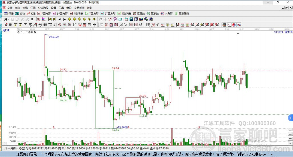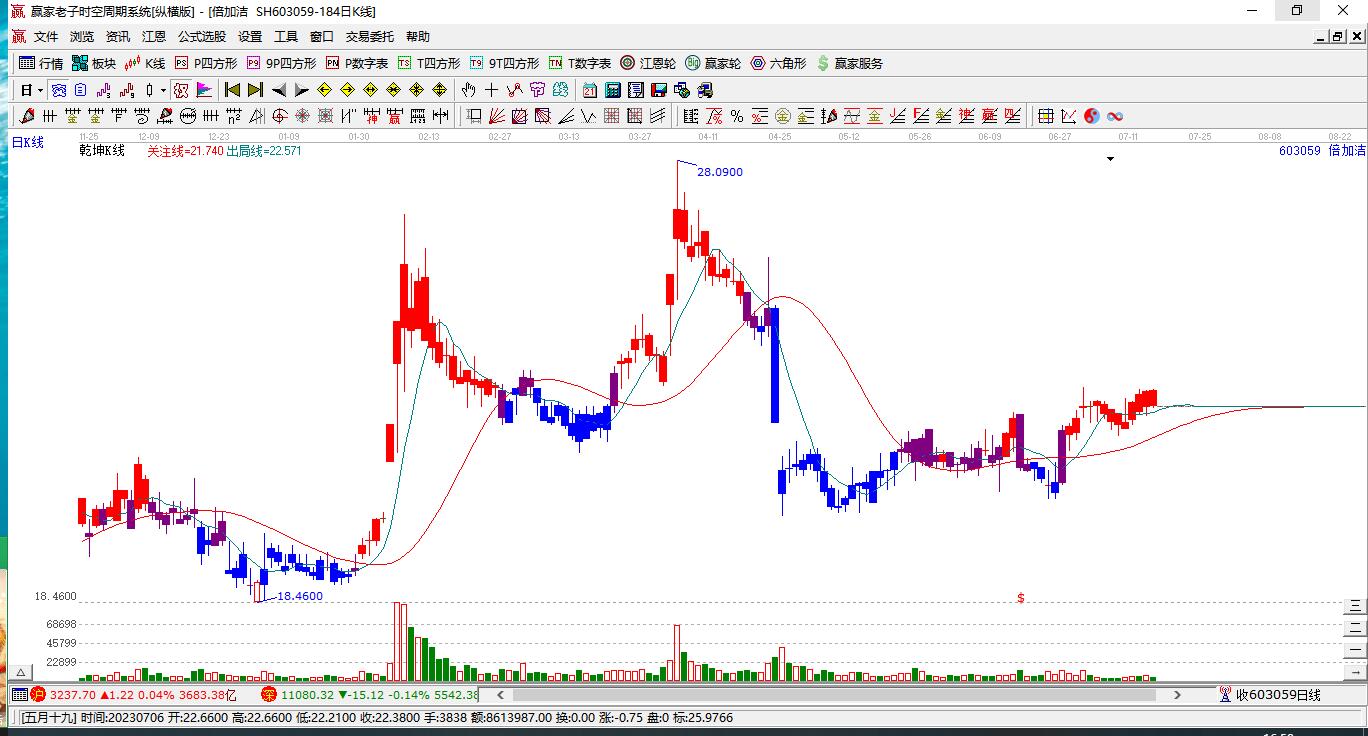 依據(jù)贏家江恩乾坤K線工具展示,本周K線以陰線收盤,目前K線處于紅色區(qū)域,位于關(guān)注線上方,依據(jù)贏家江恩乾坤K線多空模型,目前多頭出局線對當前股價形成支撐,短期看多。后市如若股價跌破多頭出局線,則可能形成短期回調(diào)。