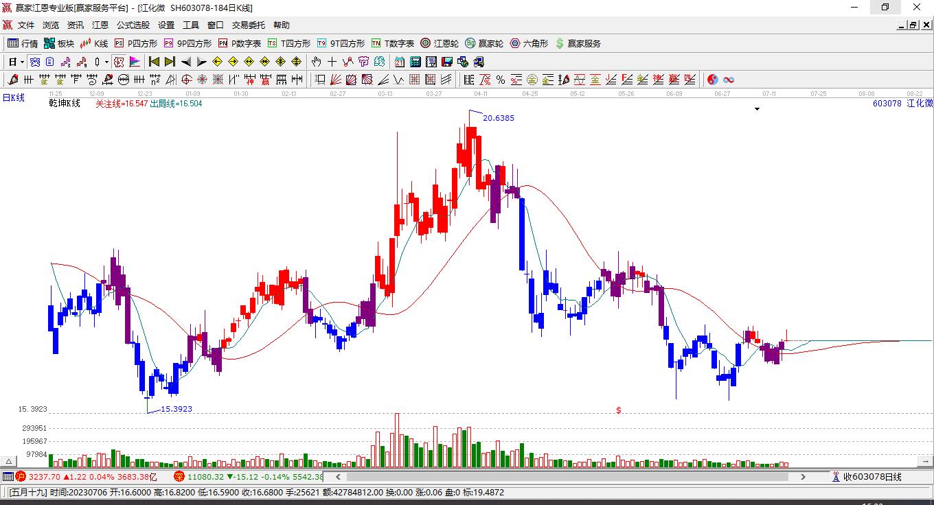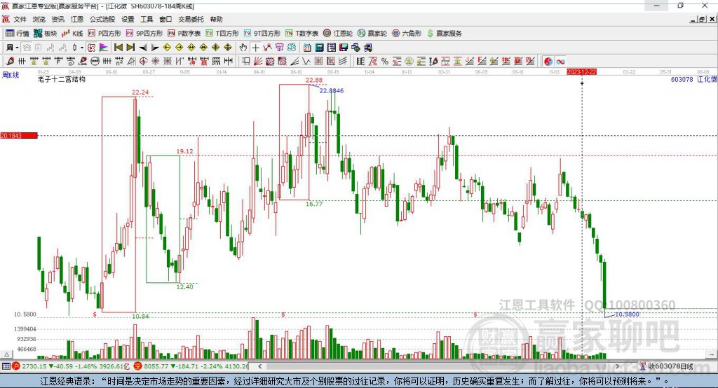 江化微603078漲至老子十二宮上漲結(jié)構(gòu)頂部下方區(qū)域內(nèi) 近10個交易日漲幅61.8%