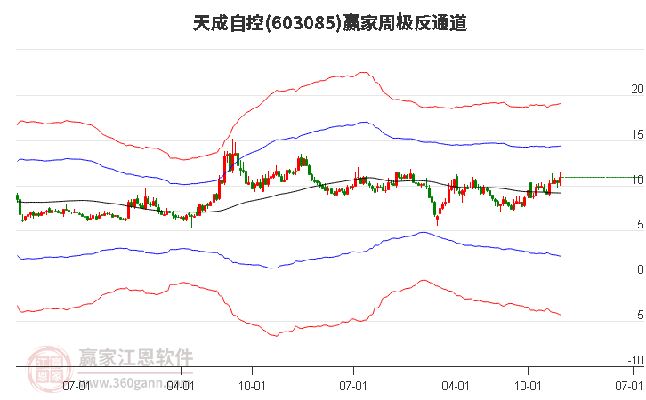 603085天成自控最高價(jià)上穿藍(lán)色外軌線(xiàn) 小幅上漲2.62%