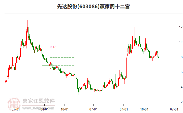 先達(dá)股份————贏家江恩五星評(píng)級(jí)展示(周K)