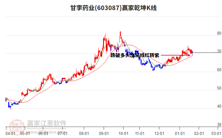 甘李藥業(yè)(603087)處于贏家江恩多頭次主線形態(tài),從12月26日形成頂分型后持續(xù)下跌,重心下移,今日跌破前低形成短期初次筑頂信號,短期多頭趨勢已被破壞,中期多頭趨勢延續(xù),但長期處于回調(diào)中。甘李藥業(yè)今