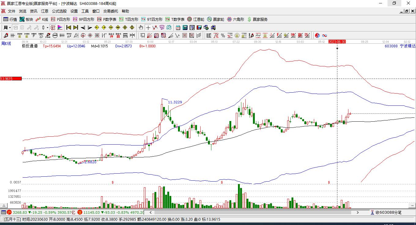 寧波精達(dá)(603088)目前漲停,所屬板塊熱泵、通用機(jī)械、工業(yè)母機(jī)、芯片、動(dòng)力電池回收、寧德時(shí)代短期底分型后持續(xù)上攻。寧波精達(dá)(603088)截止目前突破極反通道強(qiáng)勢(shì)通道線,根據(jù)贏家江恩極反通道趨勢(shì)工
