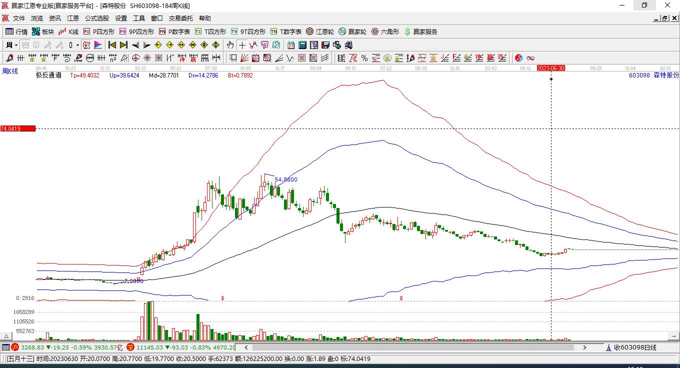 依據(jù)贏家江恩極反通道趨勢(shì)工具展示,本周股價(jià)處于生命線上強(qiáng)勢(shì)通道,本周收盤價(jià)14.68,自近期通道內(nèi)高點(diǎn)16.5持續(xù)下跌至本周,到達(dá)生命線11.9008點(diǎn)上方,短期關(guān)注此線支撐,如支撐不破,保持在強(qiáng)勢(shì)通道內(nèi),波段繼續(xù)看多,有望再次挑戰(zhàn)藍(lán)色上軌線。若跌破生命線11.9008,進(jìn)入弱勢(shì)通道,打開下跌空間。