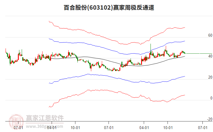 依據(jù)贏家江恩極反通道趨勢工具展示,本周股價處于生命線上強(qiáng)勢通道,本周收盤價44.56,自近期通道內(nèi)高點(diǎn)47.4持續(xù)下跌至本周,到達(dá)生命線41.7293點(diǎn)上方,短期關(guān)注此線支撐,如支撐不破,保持在強(qiáng)勢通道內(nèi),波段繼續(xù)看多,有望再次挑戰(zhàn)藍(lán)色上軌線。若跌破生命線41.7293,進(jìn)入弱勢通道,打開下跌空間。