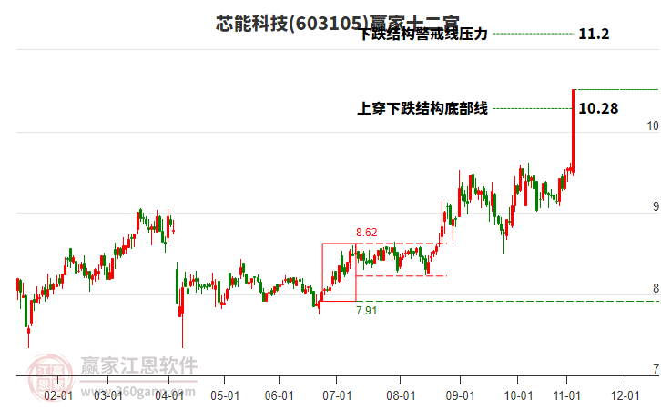 芯能科技根據(jù)贏家江恩極反通道趨勢(shì)工具展示,上方壓力位10.8058,下方支撐位9.6604。芯能科技處于贏家江恩多頭主線形態(tài),今日重心上移,短期持續(xù)上漲,形成筑底信號(hào),12月30日發(fā)出中期江恩筑頂信號(hào)