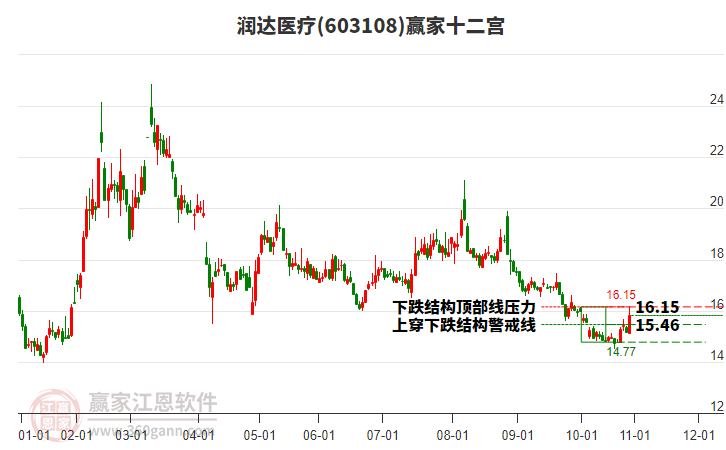 12月19日603108潤達(dá)醫(yī)療挑戰(zhàn)生命線 以上下影小陰線收盤