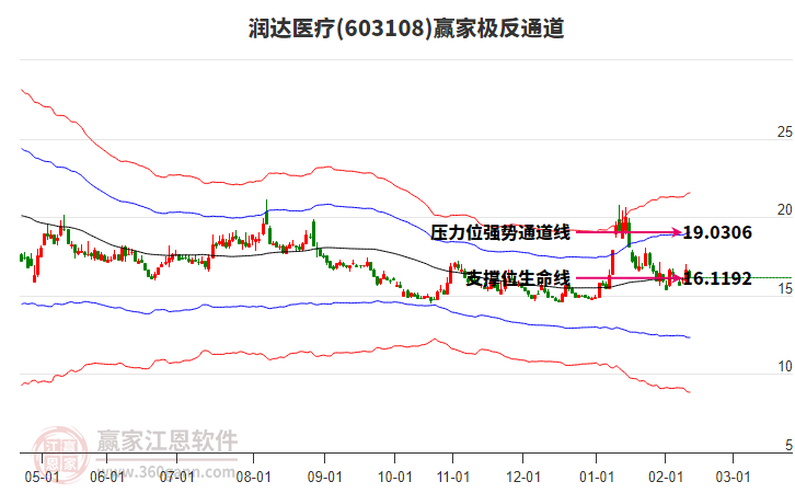 依據(jù)贏家江恩系統(tǒng)趨勢(shì)工具極反通道分析判斷潤達(dá)醫(yī)療603108運(yùn)行在生命線以上強(qiáng)勢(shì)區(qū)域,根據(jù)規(guī)則該股可短線、波段結(jié)合操作;結(jié)合物極必反的原理通過分鐘圖做盤中差價(jià),應(yīng)用口訣是:生命線上強(qiáng)勢(shì)走,生命線下難抬頭;紅黃兩條外軌線,壓力支撐顯勢(shì)頭。