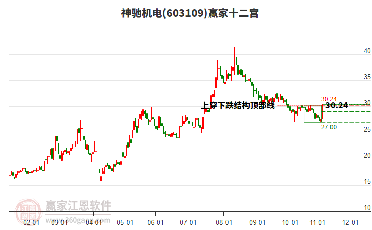 神馳機電處于贏家江恩多頭中期回調形態(tài),今日雖重心下移,但短期多頭趨勢未改變,9月30日發(fā)出中期江恩筑底信號后,經過454日,今日形成中期筑頂信號,若持續(xù)下跌,觸發(fā)長期筑頂信號,神馳機電將轉為空頭主線。