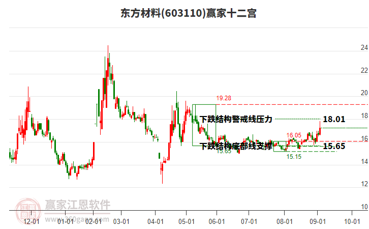 東方材料處于贏家江恩空頭主線形態(tài),今日雖重心下移,但短期多頭趨勢未改變,長期發(fā)出江恩筑頂信號,注意風(fēng)險規(guī)避。東方材料今日雖高開,截止目前股價低于昨日收盤價,呈下跌走勢。