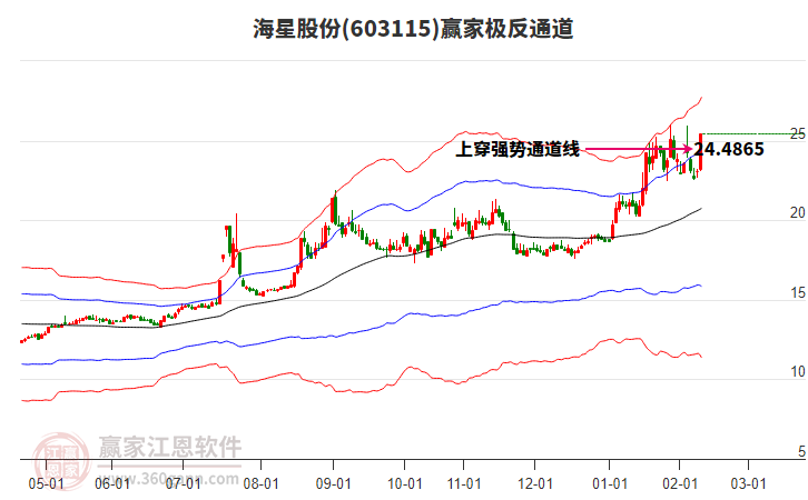 今日海星股份最高價26.03挑戰(zhàn)了贏家極反通道工具上方紅色外軌線,受到上方紅色外軌線強(qiáng)力壓制,最終收盤停留在在上方紅色外軌線與藍(lán)色外軌線上方的超強(qiáng)通道區(qū)域。海星股份近10個交易日漲幅23.19%。