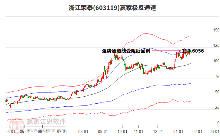 今天浙江榮泰最高價(jià)121.75上穿了贏家極反通道工具藍(lán)色外軌線,受到藍(lán)色外軌線強(qiáng)力壓制,最終收盤停留在在藍(lán)色外軌線與生命線上方的強(qiáng)勢通道區(qū)域。浙江榮泰近10個(gè)交易日漲幅3.01%。
