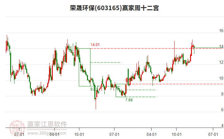 榮晟環(huán)保(603165)形成殘陽(yáng)鋪水形態(tài),突破黃金價(jià)格分割工具壓力位14.94元