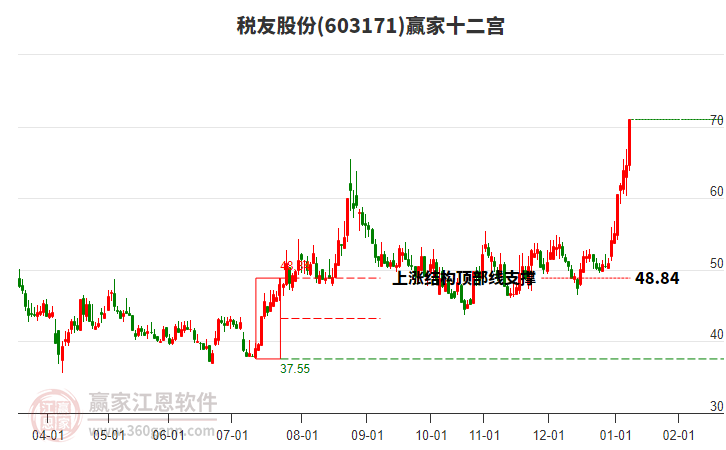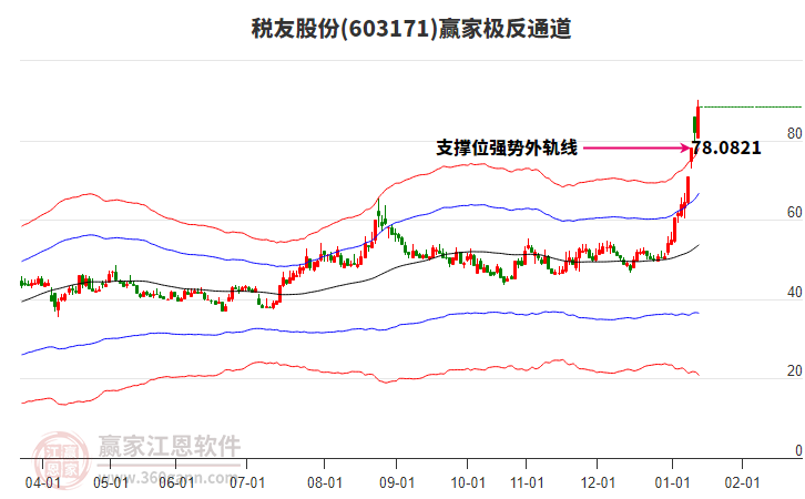 依據(jù)贏家江恩系統(tǒng)趨勢工具極反通道分析判斷稅友股份603171運(yùn)行在生命線以上強(qiáng)勢區(qū)域,根據(jù)規(guī)則該股可短線、波段結(jié)合操作;結(jié)合物極必反的原理通過分鐘圖做盤中差價(jià),應(yīng)用口訣是:生命線上強(qiáng)勢走,生命線下難抬頭;紅黃兩條外軌線,壓力支撐顯勢頭。