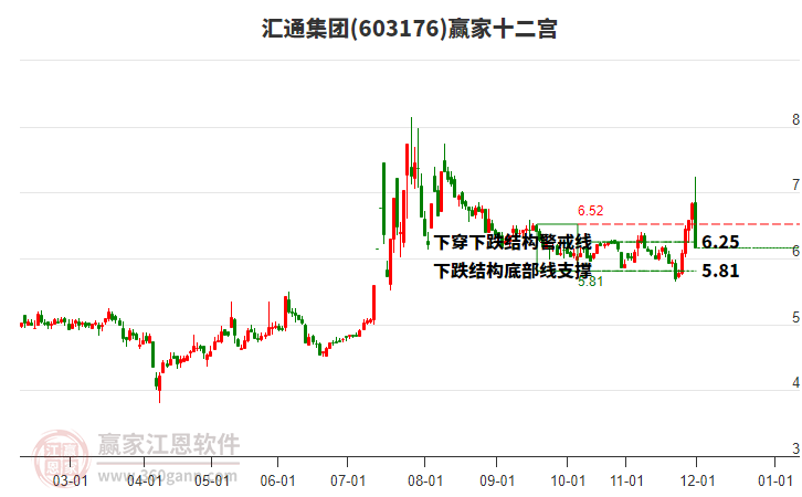 603176匯通集團(tuán)處于贏家江恩多頭中期回調(diào)形態(tài),今日重心下移,形成短期筑頂信號(hào),從12月1日形成中期頂分型后中期重心持續(xù)下移,今日跌破前低形成初次筑頂信號(hào),長(zhǎng)期處于多頭回調(diào)趨勢(shì)。匯通集團(tuán)K線以上下影