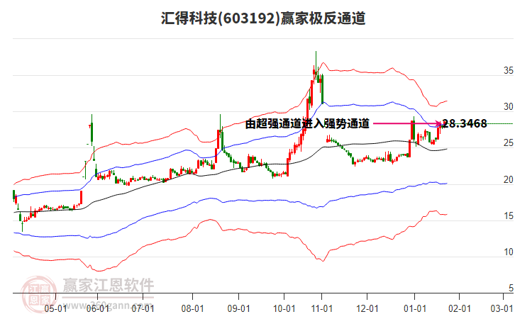 1月19日匯得科技603192最高價(jià)28.27挑戰(zhàn)了贏家極反通道工具藍(lán)色外軌線(xiàn),受到藍(lán)色外軌線(xiàn)強(qiáng)力壓制,最終收盤(pán)停留在在藍(lán)色外軌線(xiàn)與生命線(xiàn)上方的強(qiáng)勢(shì)通道區(qū)域。匯得科技603192近10個(gè)交易日漲幅7.