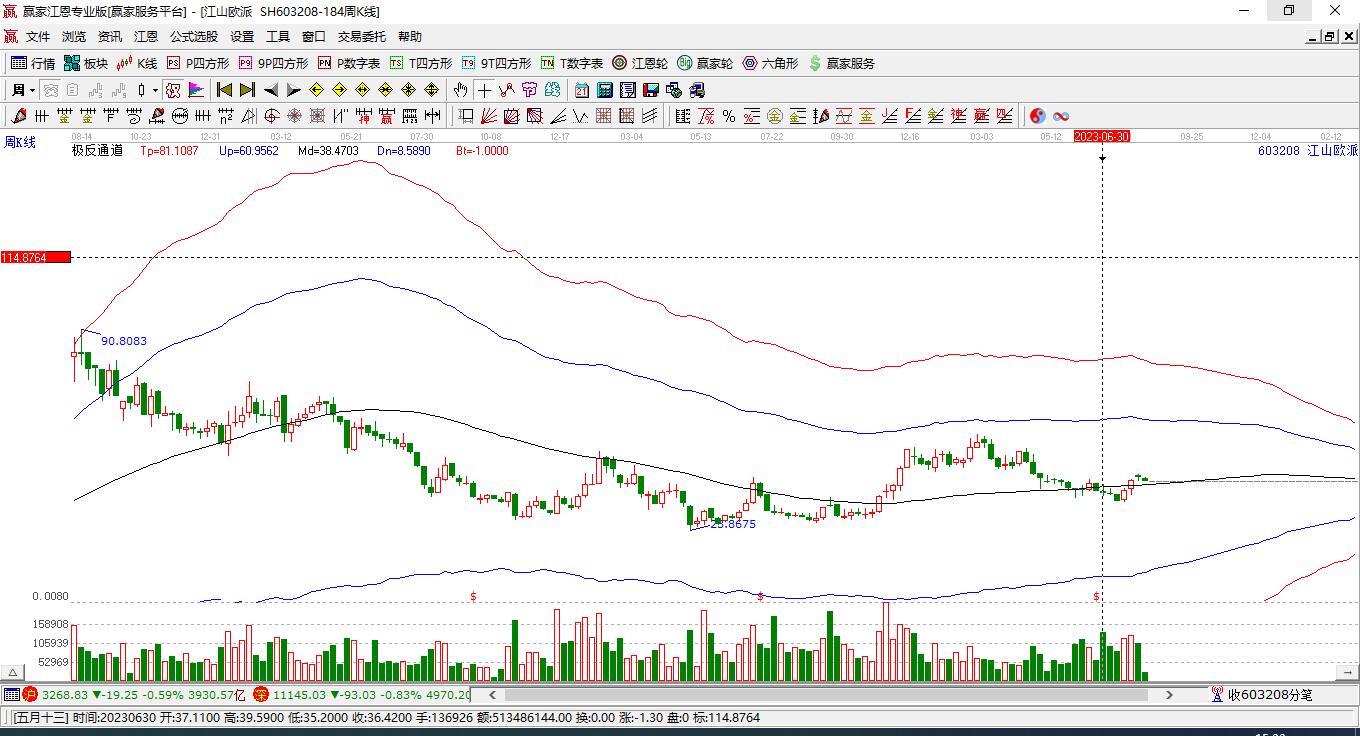 江山歐派(603208)處于贏家江恩多頭主線形態(tài),今日雖重心上移,但短期空頭趨勢未改變,長期發(fā)出江恩筑底信號,屬長期多頭預警。江山歐派今日低開,截止目前微漲1.51%,K線為小陽線,呈上漲走勢。