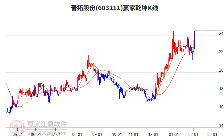 晉拓股份處于贏家江恩多頭主線形態(tài),從1月30日形成底分型后持續(xù)上攻,今日突破前高形成初次江恩筑底信號,中長期多頭趨勢依舊保持。晉拓股份目前漲停,走出獨立行情。晉拓股份今日跳空高開,漲停,呈現(xiàn)上漲走勢。