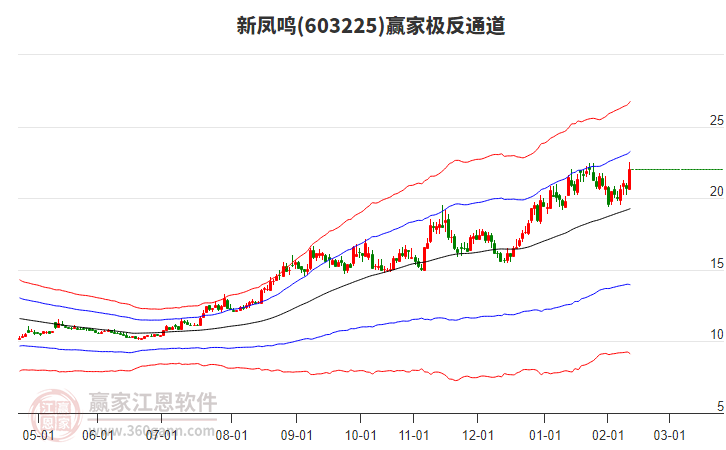 當(dāng)天新鳳鳴最高價21.62挑戰(zhàn)了贏家極反通道工具藍色外軌線,受到藍色外軌線強力壓制,最終收盤停留在在藍色外軌線與生命線上方的強勢通道區(qū)域。新鳳鳴近10個交易日漲幅16.53%。