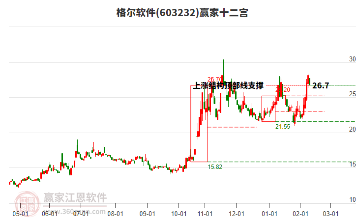 格爾軟件處于贏家江恩多頭主線形態(tài),今日重心上移,短期持續(xù)上漲,從1月27日形成中期底分型后,行情經(jīng)歷一波上漲,突破前高形成中期初次筑底信號,長期處于多頭回調(diào)趨勢。格爾軟件今日低開,截止目前漲幅4.39