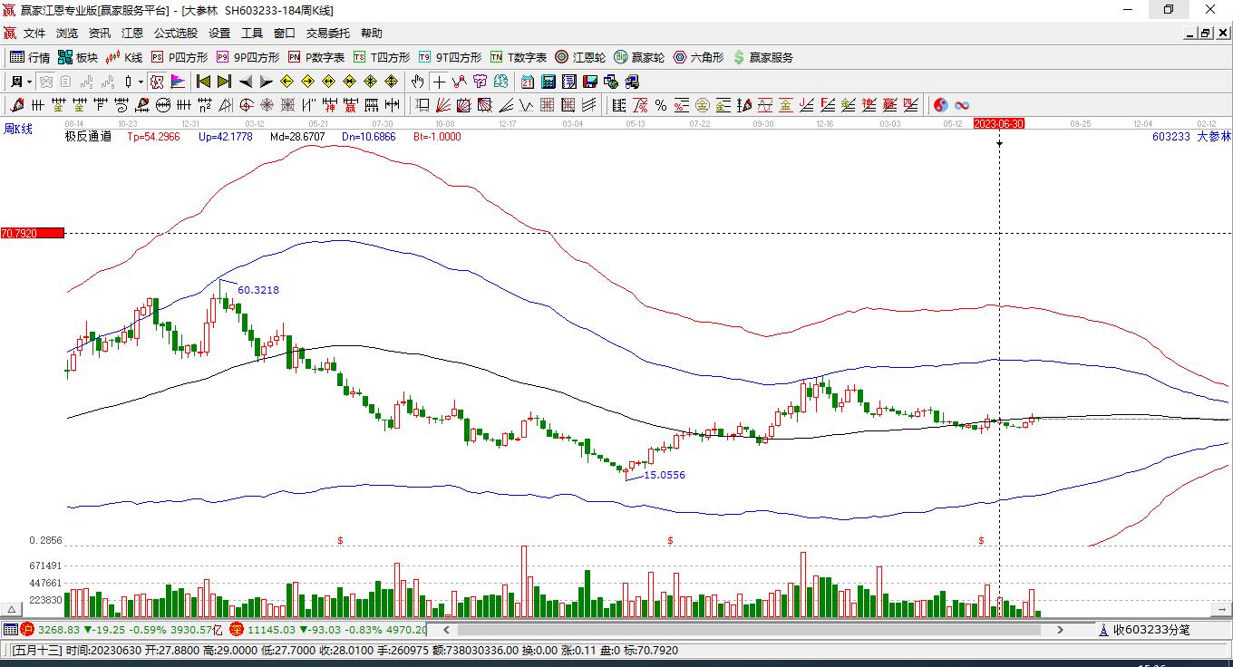 今天603233大參林最高價(jià)21.78挑戰(zhàn)了贏家極反通道工具上方紅色外軌線,受到上方紅色外軌線強(qiáng)力壓制,最終收盤(pán)停留在在上方紅色外軌線與藍(lán)色外軌線上方的超強(qiáng)通道區(qū)域。603233大參林近10個(gè)交易日漲