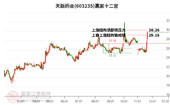 周三603235天新藥業(yè)以上下影小陰線收盤,近期時間窗口為:12月18日