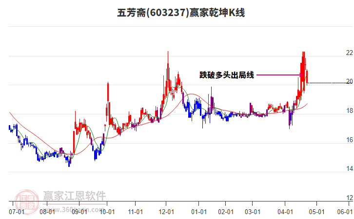 603237五芳齋處于贏家江恩空頭主線形態(tài),12月22日發(fā)出江恩筑底信號(hào)后,經(jīng)過35日,今日形成短期筑頂信號(hào),短期多頭趨勢已被破壞,中期多頭反彈趨勢延續(xù),但長期處于下跌中。五芳齋目前K線為小陰線,且當(dāng)