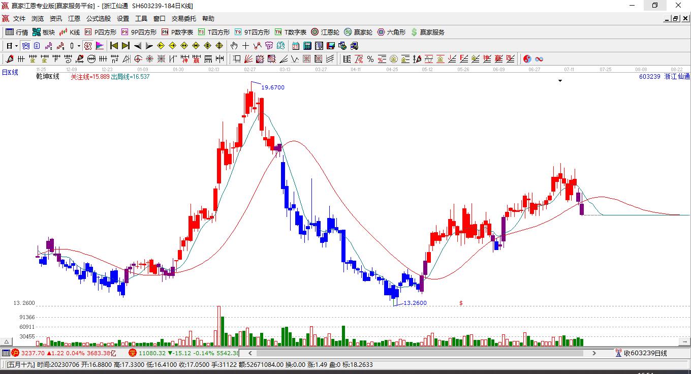 603239浙江仙通處于贏家江恩多頭主線形態(tài),2月10日發(fā)出江恩筑頂信號后,經(jīng)過3日,今日再次發(fā)出江恩底分型并發(fā)出江恩筑底信號,中期雖然處于回調(diào)中,但長期多頭趨勢延續(xù)。603239浙江仙通根據(jù)贏家江恩