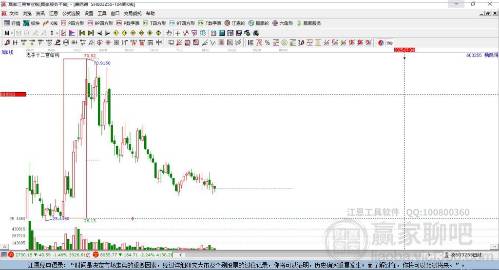 依據(jù)贏家江恩乾坤K線工具展示,目前股價(jià)處于關(guān)注線下方,本周K線以陰線收盤,收盤價(jià)處于出局線上方,近期1月30日出現(xiàn)高點(diǎn),12月31日出現(xiàn)低點(diǎn),近期圍繞關(guān)注線震蕩,近2周出現(xiàn)短線下行,依據(jù)贏家江恩乾坤K線工具展示,工具顯示依舊短線看多。