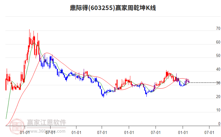 603255鼎際得處于贏家江恩多頭中期回調(diào)形態(tài),1月8日發(fā)出江恩筑底信號(hào)后,經(jīng)過29日,今日形成短期筑頂信號(hào),短期多頭趨勢已被破壞,中期多頭反彈趨勢延續(xù),但長期處于回調(diào)中。鼎際得截至目前K線為下影小陽