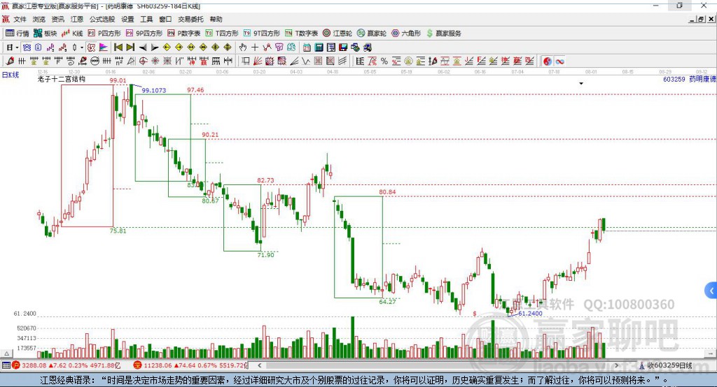 藥明康德處于贏家江恩多頭中期回調(diào)形態(tài),今日重心持續(xù)下移,短期延續(xù)下跌趨勢,6月13日發(fā)出中期江恩筑底信號后,經(jīng)過227日,今日形成中期筑頂信號,若持續(xù)下跌,觸發(fā)長期筑頂信號,藥明康德將轉(zhuǎn)為空頭主線。藥