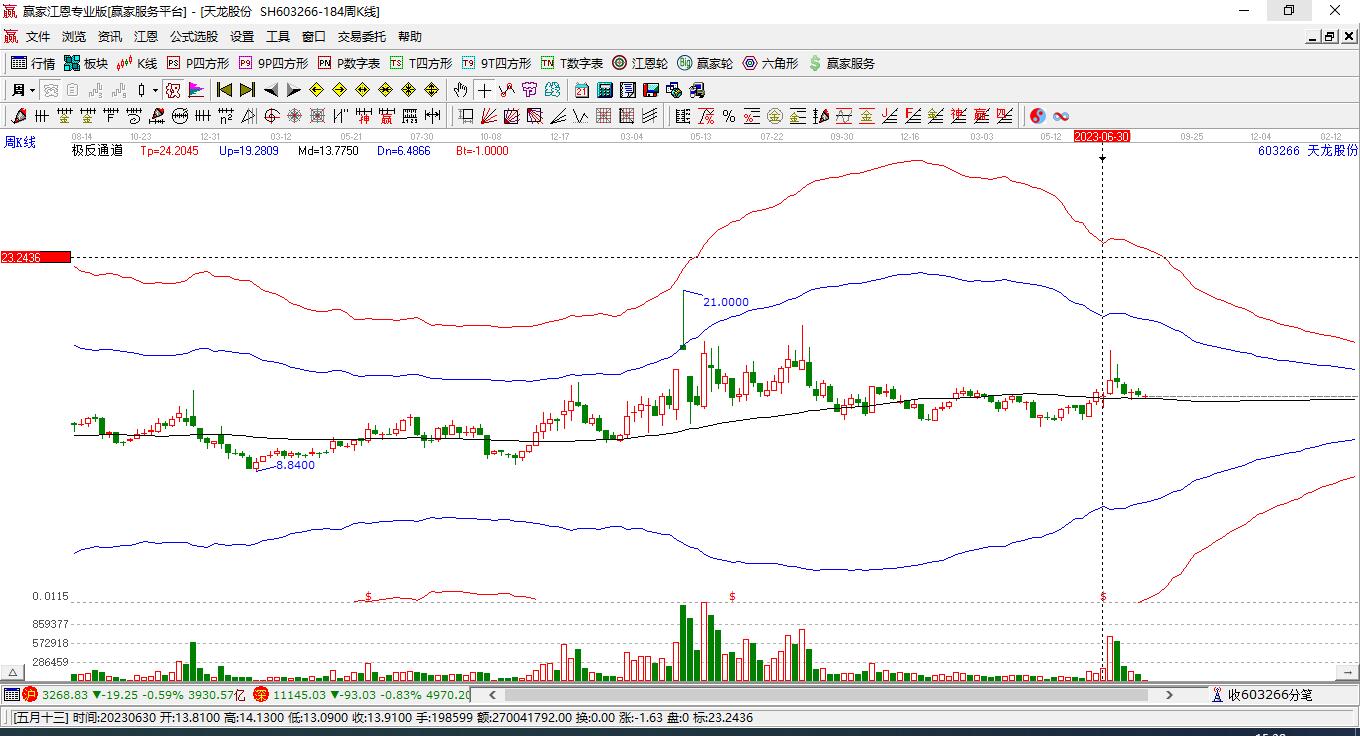 在1月第4周(1月19日-1月23日)中天龍股份(603266)周漲幅為微漲1.5%。本周最高價為23.23元,出現(xiàn)在星期四,最低價為22.11元,出現(xiàn)在1月21日。