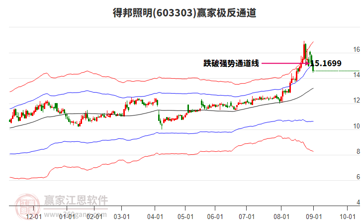 依據(jù)贏家江恩系統(tǒng)趨勢工具極反通道分析判斷得邦照明603303運行在生命線以下弱勢區(qū)域,根據(jù)規(guī)則該股短線輕倉參與,股價跌至弱勢外軌線后波段再結合其它工具信號建倉。應用口訣是:生命線上強勢走,生命線下難抬頭;紅黃兩條外軌線,壓力支撐顯勢頭。