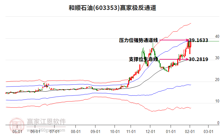 目前603353和順石油最高價(jià)39.2挑戰(zhàn)了贏家極反通道工具藍(lán)色外軌線,受到藍(lán)色外軌線強(qiáng)力壓制,最終收盤停留在在藍(lán)色外軌線與生命線上方的強(qiáng)勢(shì)通道區(qū)域。603353和順石油近10個(gè)交易日漲幅21.54%