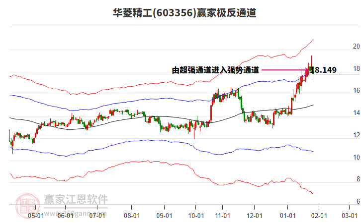 當天華菱精工603356最高價19.02挑戰(zhàn)了贏家極反通道工具藍色外軌線,受到藍色外軌線強力壓制,最終收盤停留在在藍色外軌線與生命線上方的強勢通道區(qū)域。華菱精工603356近10個交易日漲幅2.43%