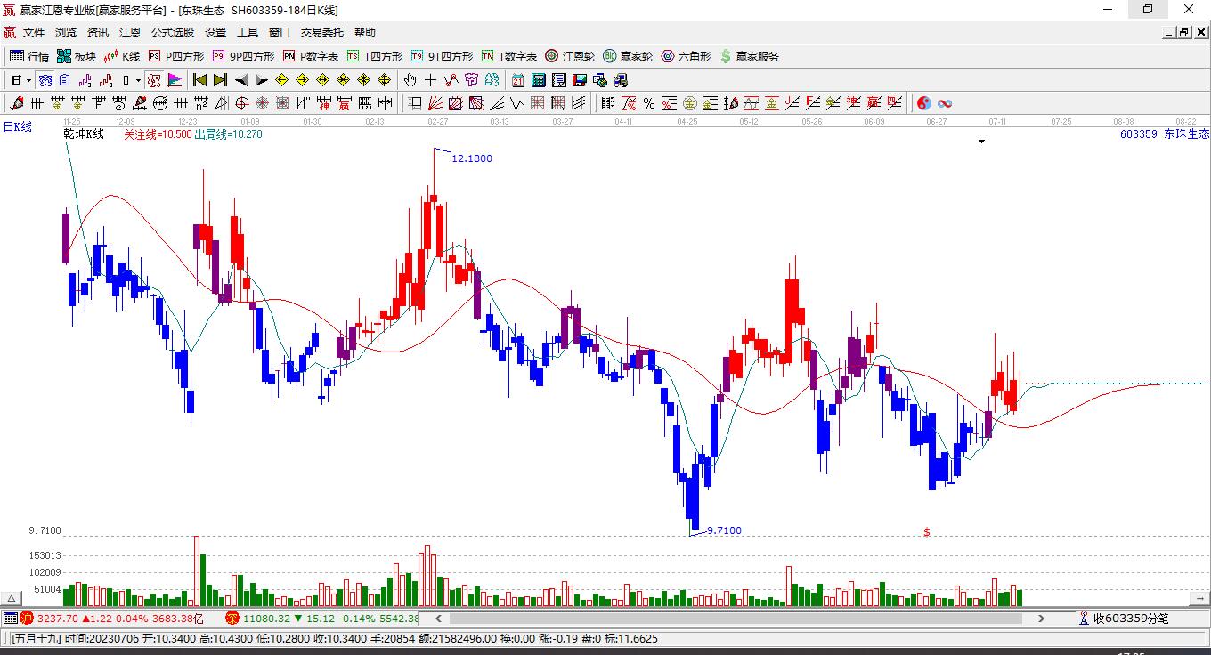 東珠生態(tài)今日漲停,受極反通道強(qiáng)勢(shì)通道線壓制
