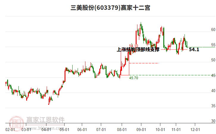 依據(jù)贏家江恩系統(tǒng)趨勢工具極反通道分析判斷三美股份603379運行在生命線以上強勢區(qū)域,根據(jù)規(guī)則該股可短線、波段結(jié)合操作;結(jié)合物極必反的原理通過分鐘圖做盤中差價,應用口訣是:生命線上強勢走,生命線下難抬頭;紅黃兩條外軌線,壓力支撐顯勢頭。