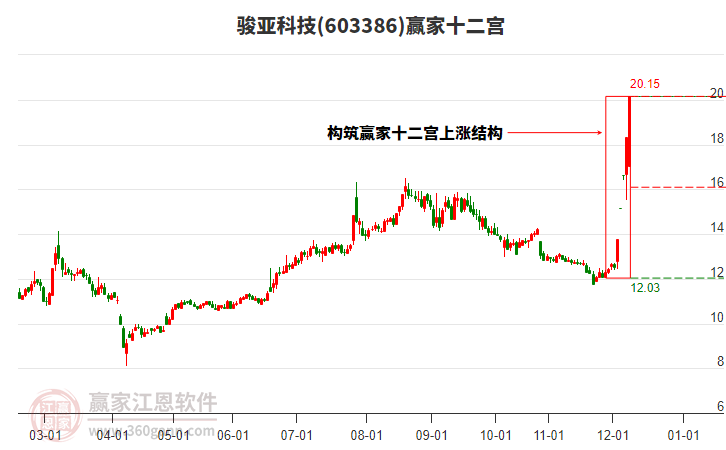 駿亞科技根據(jù)贏家江恩極反通道趨勢工具展示,上方壓力位17.8625,下方支撐位14.8229。駿亞科技處于贏家江恩多頭主線形態(tài),從1月15日形成底分型后持續(xù)上攻,今日突破前高形成初次江恩筑底信號,中長