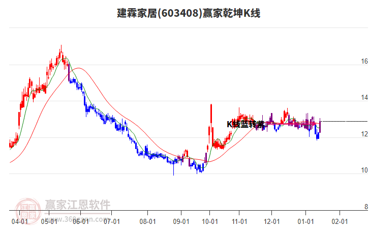 603408建霖家居處于贏家江恩多頭主線形態(tài),12月31日發(fā)出江恩筑頂信號(hào)后,經(jīng)過(guò)15日,今日再次發(fā)出江恩底分型并發(fā)出江恩筑底信號(hào),中期雖然處于回調(diào)中,但長(zhǎng)期多頭趨勢(shì)延續(xù)。建霖家居今日跳空高開(kāi),截止目