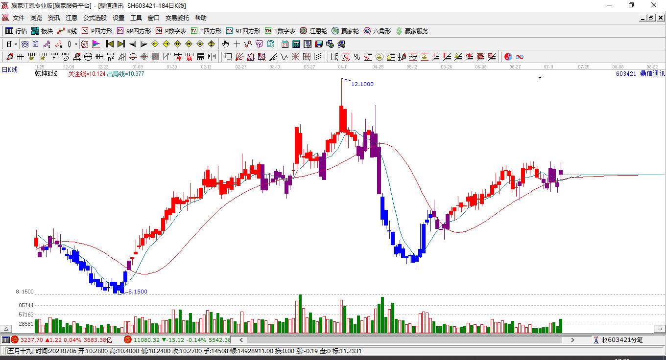 今天鼎信通訊漲停,短期反彈到達(dá)黃金價格回調(diào)支撐位工具7.95元壓力位