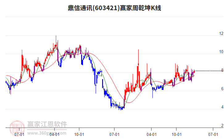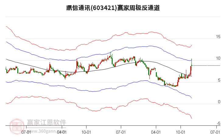 603421鼎信通訊處于贏家江恩空頭主線形態(tài),1月20日發(fā)出江恩筑底信號后,經(jīng)過13日,今日形成短期筑頂信號,短期多頭趨勢已被破壞,中期多頭反彈趨勢延續(xù),但長期處于下跌中。603421鼎信通訊根據(jù)贏家