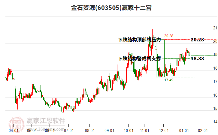 603505金石資源根據(jù)贏家江恩極反通道趨勢(shì)工具展示,上方壓力位18.9598,下方支撐位15.5124。603505金石資源處于贏家江恩空頭中期反彈形態(tài),從1月26日形成頂分型后持續(xù)下跌,重心下移,