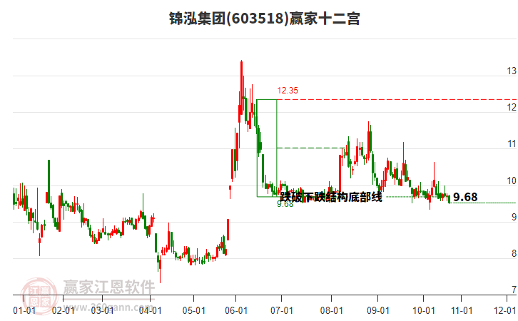 603518錦泓集團處于贏家江恩多頭次主線形態(tài),從1月22日形成頂分型后持續(xù)下跌,重心下移,今日跌破前低形成短期初次筑頂信號,短期多頭趨勢已被破壞,中長期多頭趨勢依舊保持。603518錦泓集團根據(jù)贏家